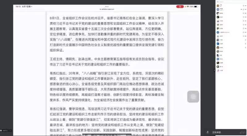 今年是“八八战略”实施20周年。为深入学习贯彻习近平总书记关于党的建设的重要思想和全国组织工作会议精神,深刻理解把握习近平新时代中国特色社会主义思想的科学体系、精神实质和实践要求,2023年8月7日下午,best365官方网站登录入口研究生第二党支部于腾讯会议平台线上开展学习贯彻省委书记易炼红在全省组织工作会议上的重要讲话精神活动,会议由党支部书记杨小波主持。