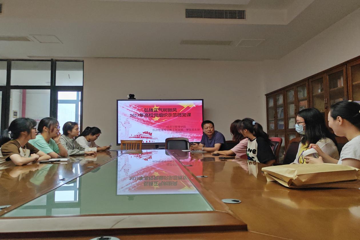 为落实高校立德树人根本任务,进一步扎实开展学习贯彻习近平新时代中国特色社会主义思想主题教育,引导广大师生凝心铸魂、筑牢根本,2023年6月21日,best365官方网站登录入口旅游管理系教工党支部和旅游管理专业学生党支部的师生党员,在文理楼302-1会议室共同学习观看了2023年高校党组织示范微党课第三期首播。