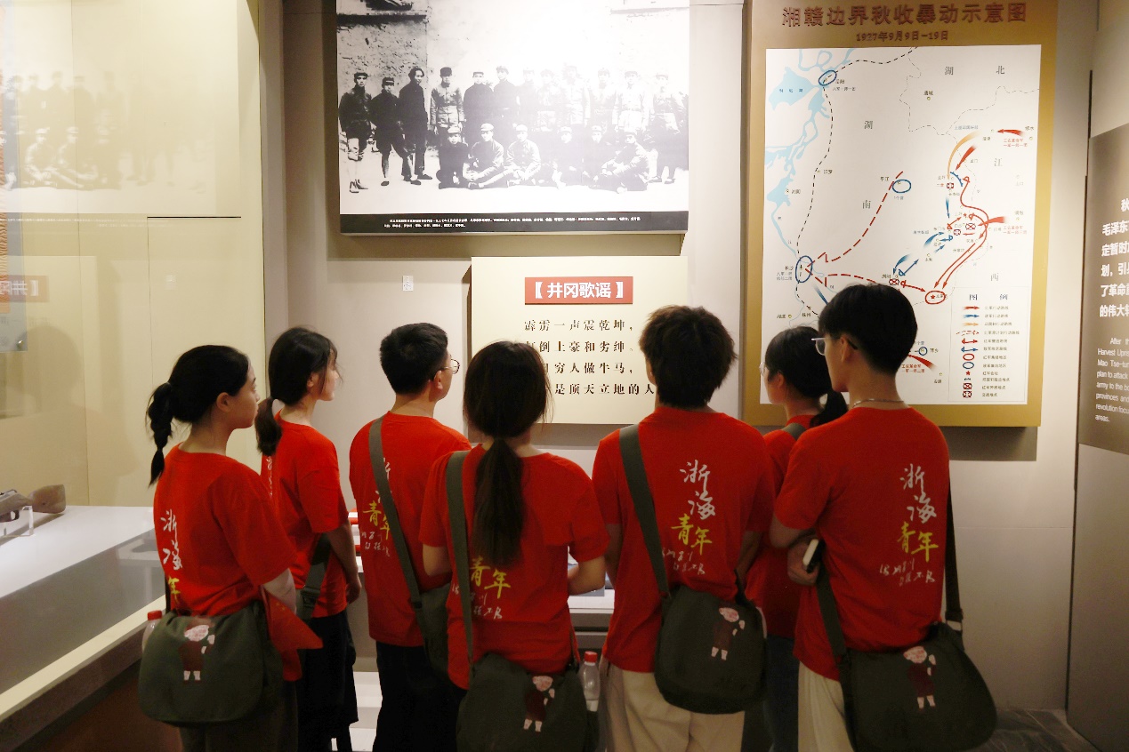 在全国青少年井冈山革命传统教育基地,实践团成员还观看了纪录片《你从井冈山走来》,全片通过详实的历史档案、珍贵的亲历者口述和生动的电视呈现,向同学们展示了中国人民解放军从当年井冈山上的星星之火,经过95年的薪火相传,成长为今天这支听党指挥、能打胜仗、作风优良的新型人民军队的光辉历程。实践团成员还在井冈山革命博物馆一起学唱井冈歌谣,“霹雳一声震乾坤,打倒土豪和劣绅……”通过学唱一首首淳朴而又真诚感人的井冈歌谣,同学们更加了解和感受到革命前辈生活的艰辛与不易。