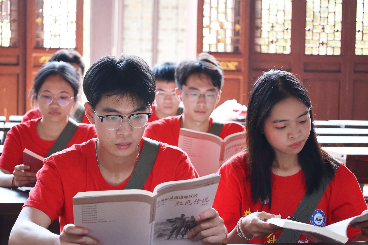 实践团成员在九江书院认真学习了《井冈山及周边地区的红色传说》一书。了解了井冈山革命根据地所在区域流传于人们口头的有关井冈山的红色故事和传说。他们还在茅坪镇神山村学习《井冈山精神》一书,深刻认识了井冈山精神的历史形成、基本内涵与时代价值。在茨坪毛泽东旧居,实践团成员詹越还为大家带来红色经典诵读——毛泽东的诗作《水调歌头·重上井冈山》和朱德的诗作《井冈山会师》,和同学们共同感悟革命者绵长的井冈山情结。