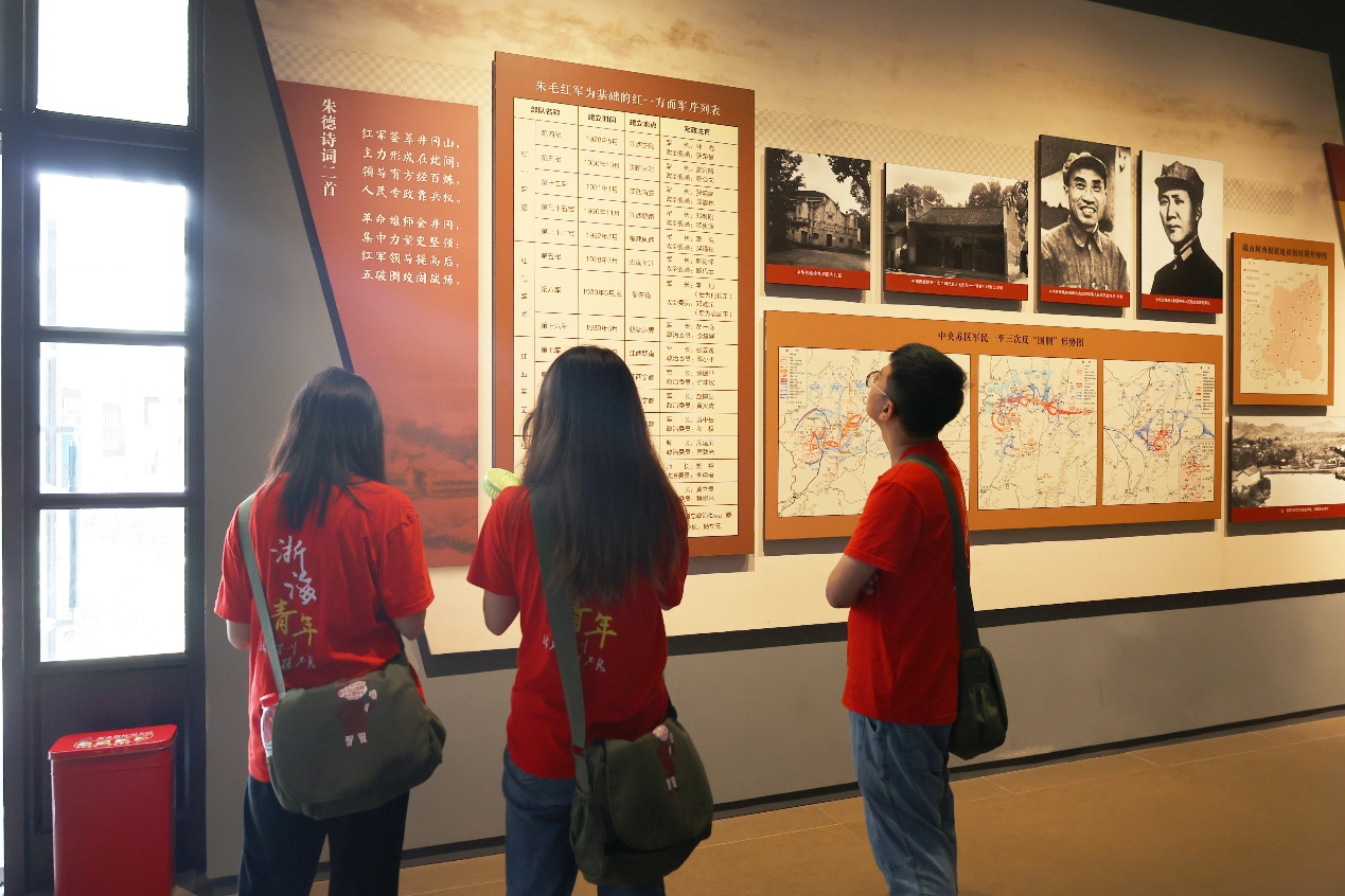 实践团先后奔赴井冈山会师广场、井冈山会师纪念馆进行参观学习。在井冈山会师纪念馆,实践团副队长张城基带领同学们学习了井冈山会师的故事。1928年,经历了千辛万苦的工农革命军在茅坪“安家”。毛泽东、何长工得知朱德、陈毅部队分两路向井冈山前进的消息后,便率领部队从井冈山出发接应,后两军成功在驻地龙江书院会师。此次会师加速了井冈星火的燎原之势,壮大了中国共产党领导下的人民军队的力量,也揭开了毛泽东与朱德革命友谊的崭新一页。